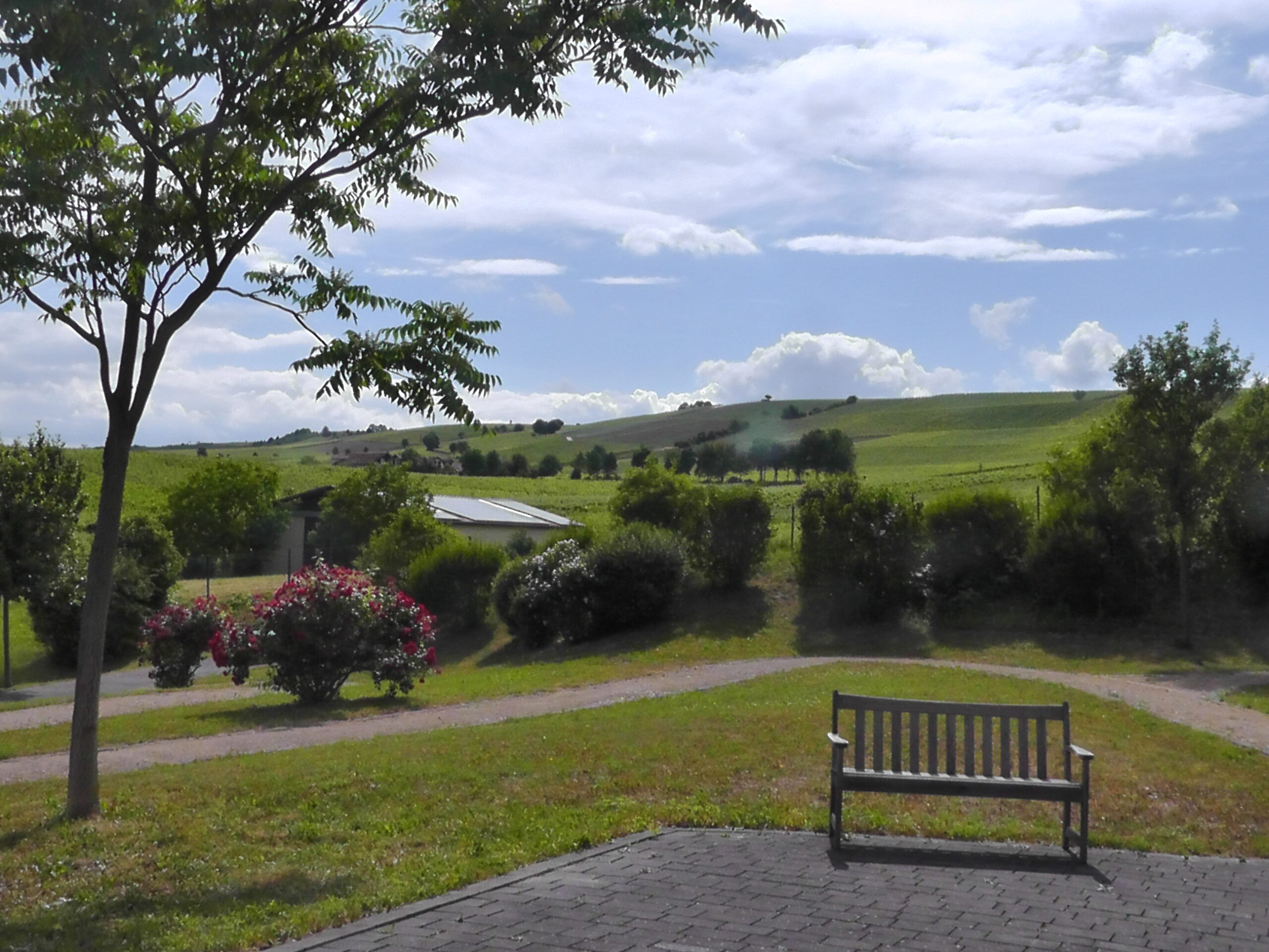 Pause mit Blick auf die Weinberge! Da kann man schon sagen, das ist Ferien für Körper, Geist und Seele!